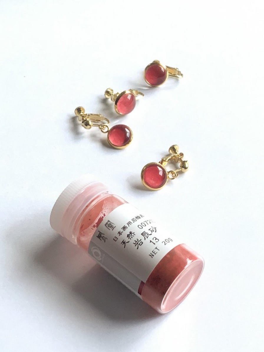 岩絵具で彩色した「日本画アクセサリー」を作っています。